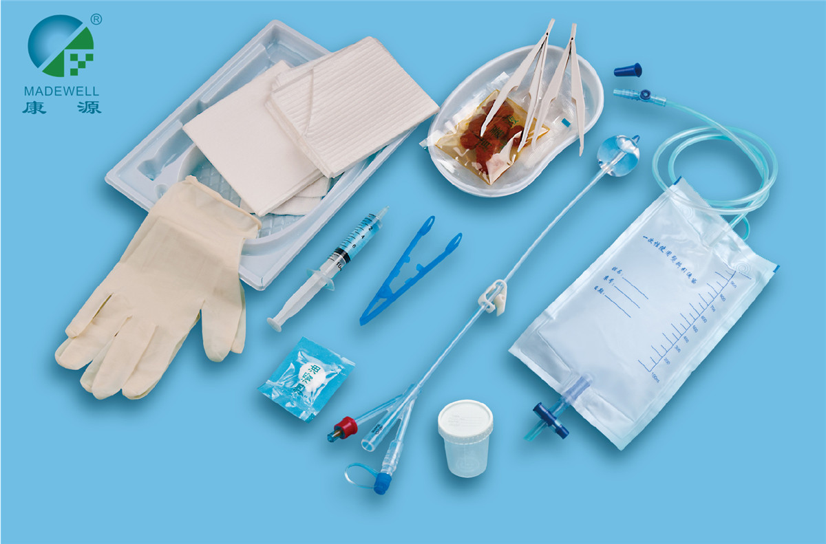 康源无菌导尿包由基本配置与选用配置组成,基本配置为硅胶导尿管,选用配置由导管夹、注水器、塑料镊子、塑料试管、碘伏棉球、纱布块、引流袋、垫巾、洞巾、外包布、橡胶检查手套、润滑棉球、消毒盘组成。