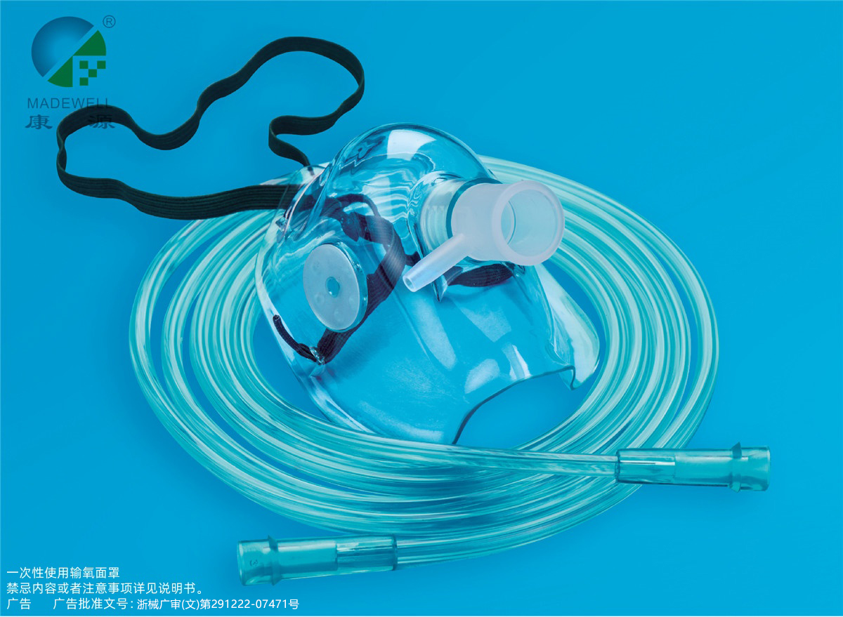 康源医疗普通型输氧面罩由面罩、接口、输氧管组成。输氧面罩的面罩、输氧管(含通用接)由医用聚氯乙烯(PVC)材料制成。产品无菌,采用环氧乙烷灭菌,其环氧乙烷残留量不大于10mg/kg。